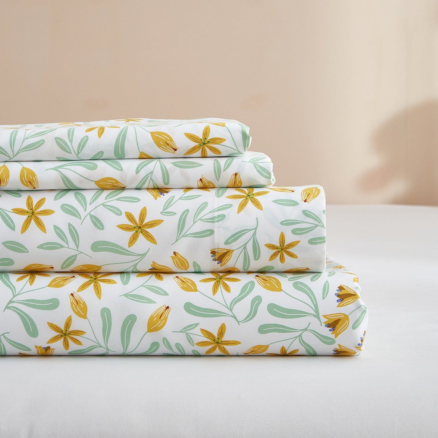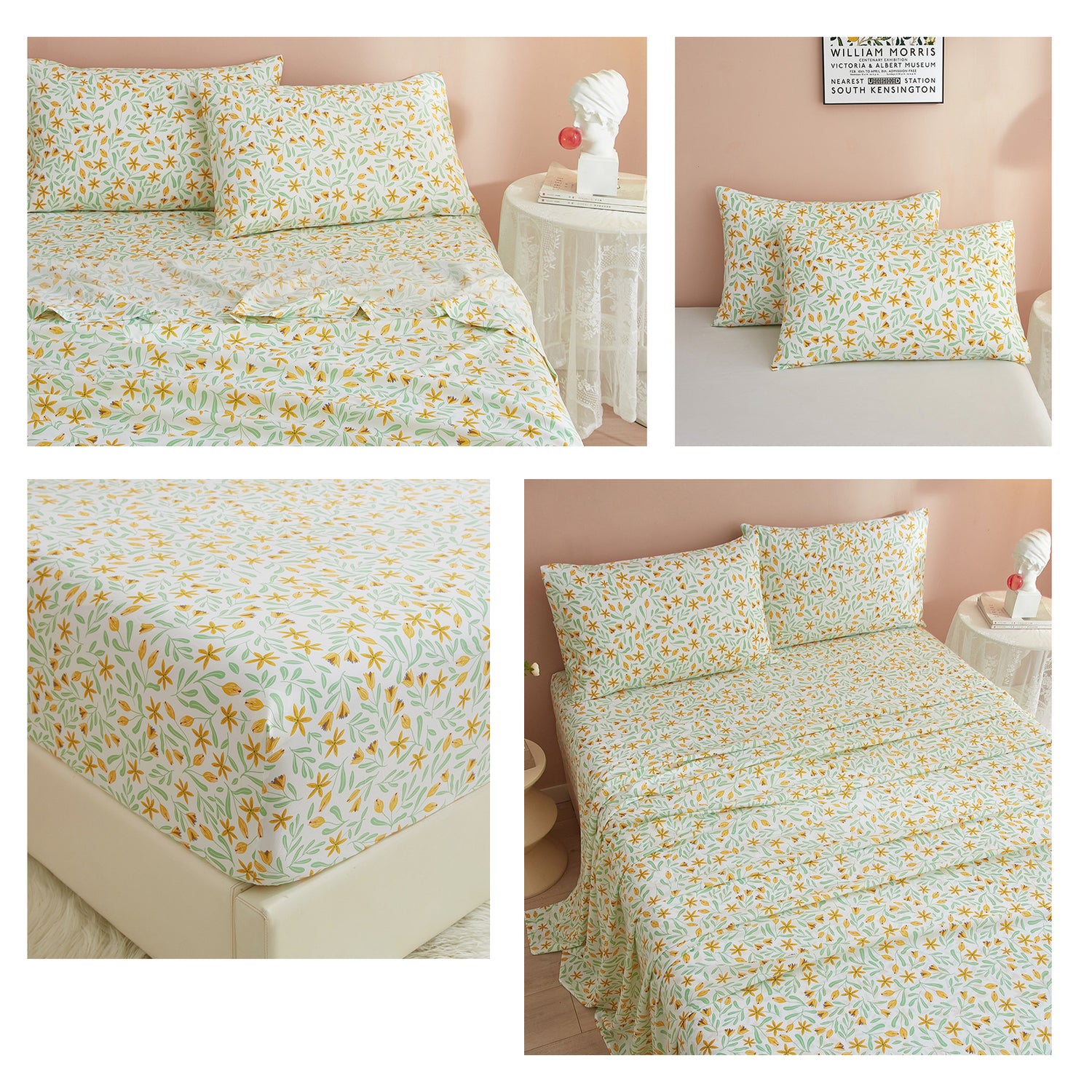 AMWAN Yellow Floral Queen Size Sheets Set 4 Piece - Extra Deep Pocket Queen Sheets - Soft Flat Sheet - Cooling Bed Sheets Super Soft with Fitted Sheet,2 Pillowcases Set (Queen,Floral)